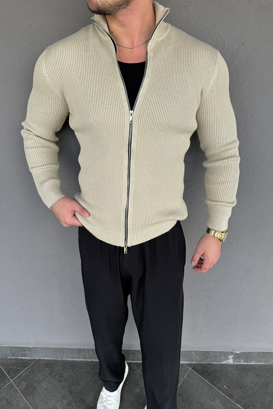 BEJ DİK YAKA FERMUARLI BASİC HIRKA