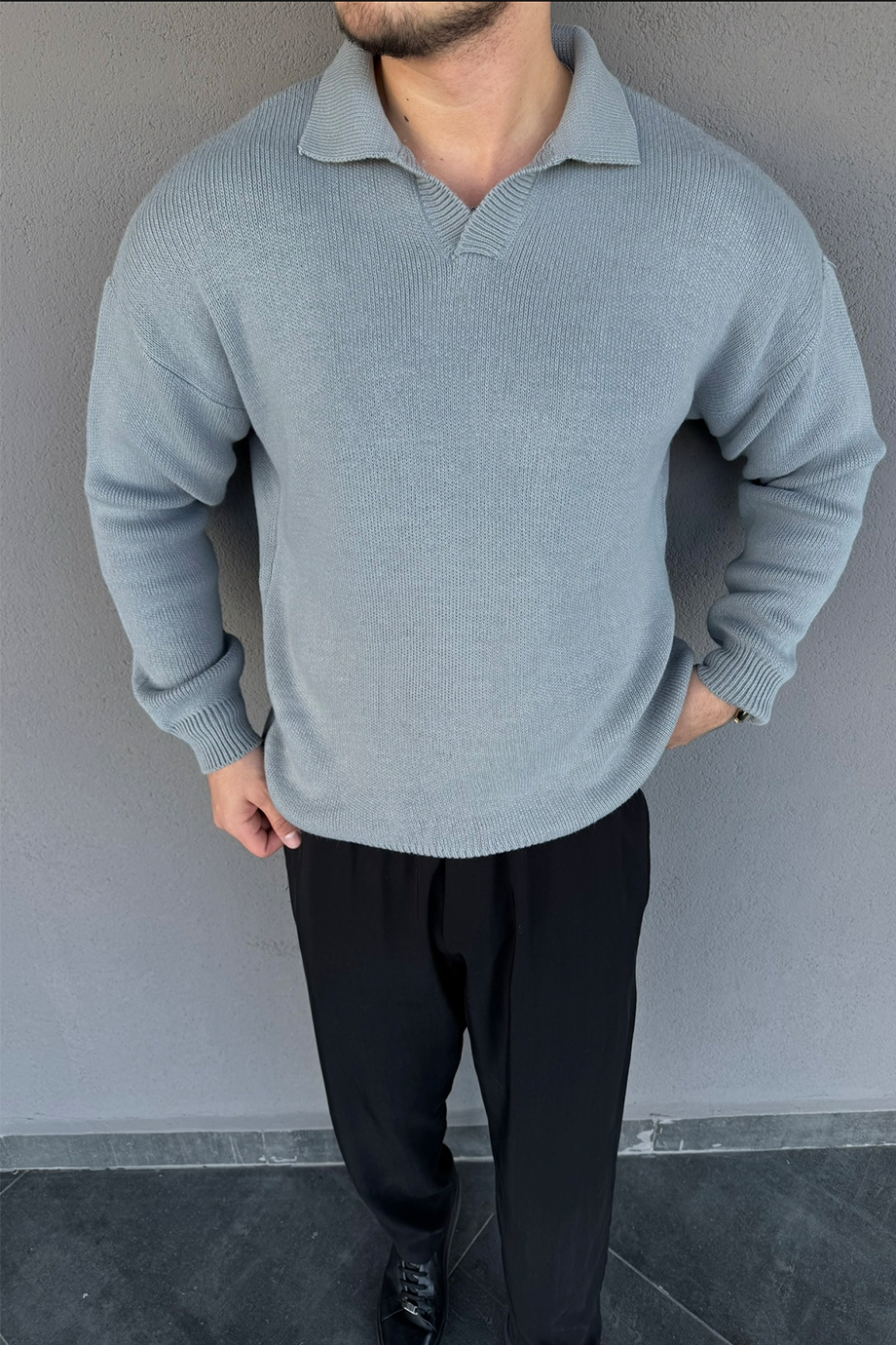 GRİ AÇIK YAKA KLASİK OVERSİZE TRİKO KAZAK