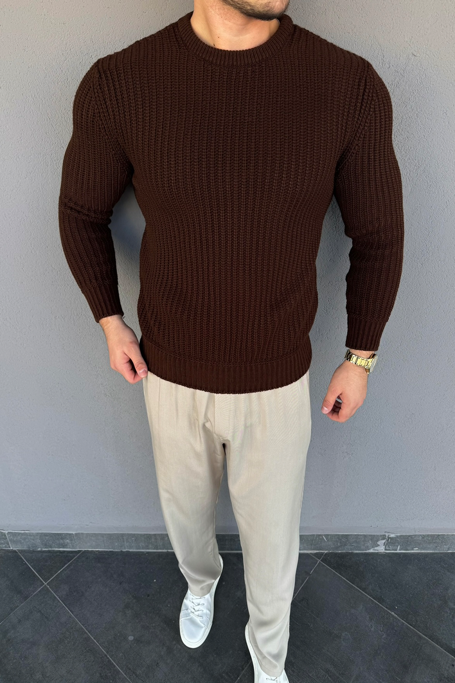 KAHVE SELANİK ÖRME TAM KALIP KAZAK