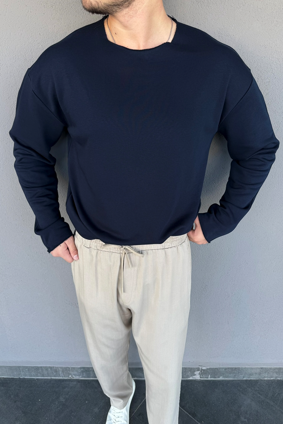 LACİVERT GENİŞ YAKA OVERSİZE KAZAK